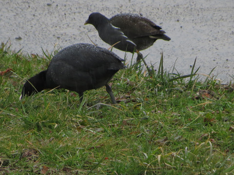家の近くまで来て、これもまた気がかりなバンがオオバンと一緒にいるのを見て