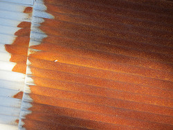 物置小屋の戸の薄いアルミ板の下部に数箇所に裂け目が出来てしまった。