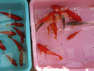十分食事できないのでは、と心配ではあるが、池の金魚たちの健康上必要な行事なので