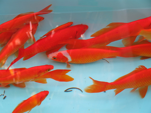 「お家のお掃除、まだすまないのかしら。」と、ひたすら待つ金魚たち。