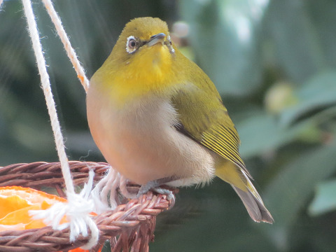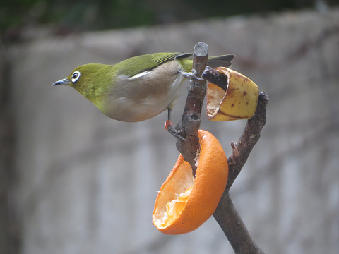 近頃メジロは誰かが庭に出ると、「早う向うに行ってよ。落ち着いて食べられないやないの。」