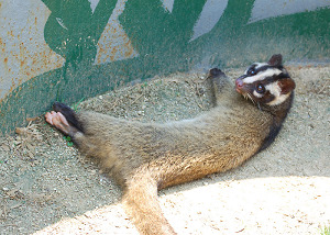 家の外壁に作り付けた物置小屋の戸を押し開けて、中に入り込んでいるのを発見。