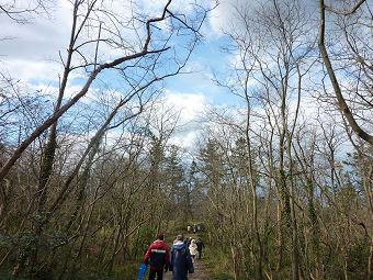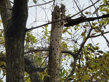 「アカゲラが・・・」という声がしたので、三人ほどがかたまって見上げている木に