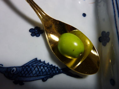 実をひとつもらう。中を開いて種子を見るより、そのまま鉢に埋めたら芽が出るかもしれない。