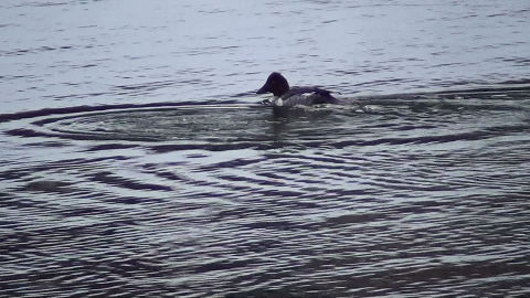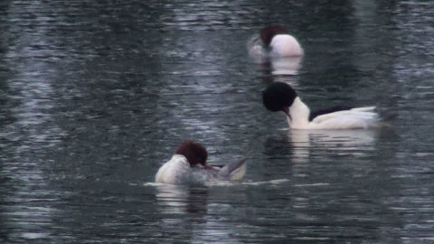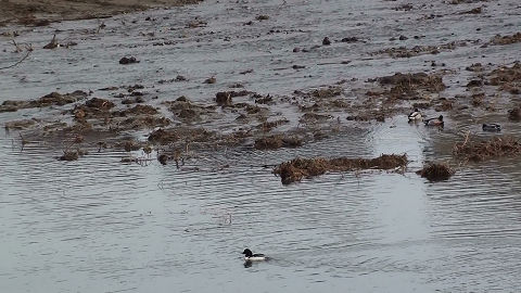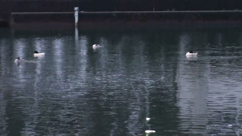 朝出かける時に最初に見たカワアイサたちはまだいて、更にユリカモメも加わっていた。