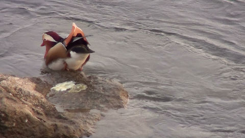 小島の上に登ってからも、羽の水を切るためか、長い間羽を揺すっていた。