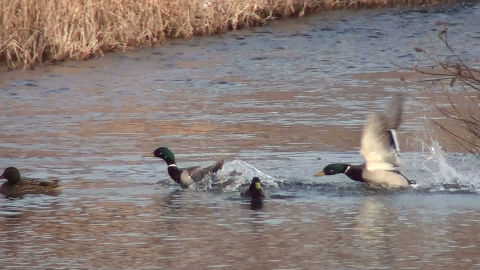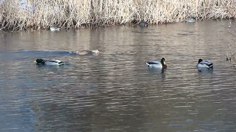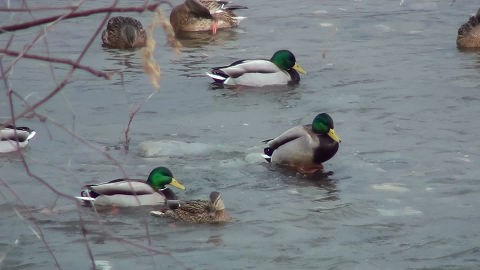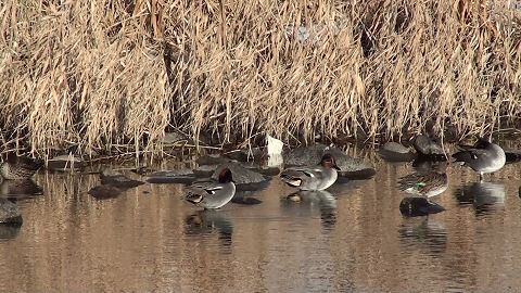 カワウ、ガンSP、マガモ、カルガモ、コガモ、ヒドリガモ、