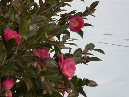 「ツピー」とお馴染みの声で、シジュウカラのつがいも飛んで来た。