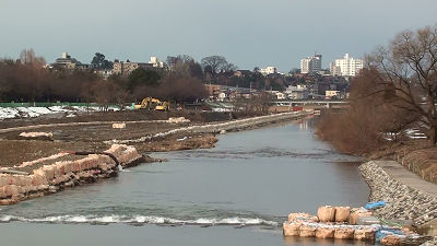 兼六園を廻る水は辰巳用水から来ていて、その取水口の上では辰巳ダムの工事が