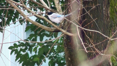 オナガの群れが飛んできて、騒ぎながら木に止まり、またすぐ飛び去った。