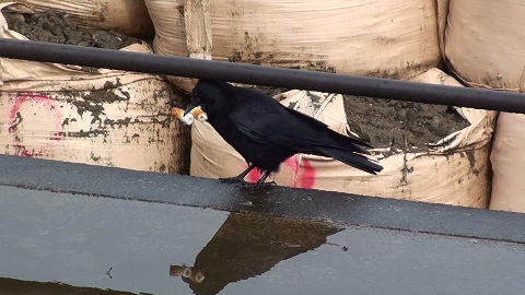 パンでも貰ったのかなと見ていると、来るカラスみんな同じものをくわえている。