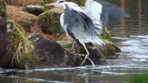 カワアイサ、カワガラス、アオサギ、ダイサギ、ハクセキレイ、セグロセキレイ、
