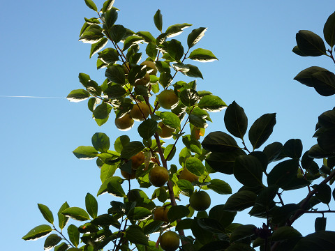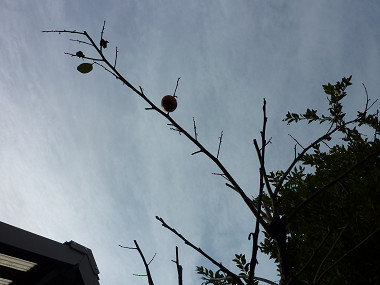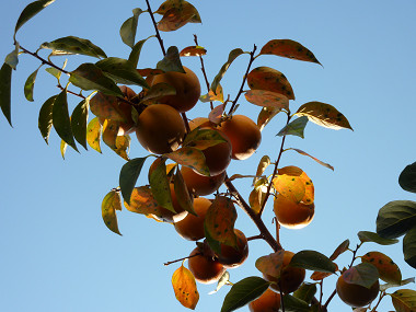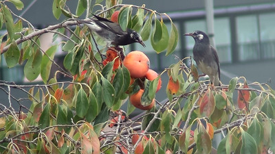 庭の三軒隣の大きな柿の木には、毎日ムクドリが群れで来ては騒いでいる。