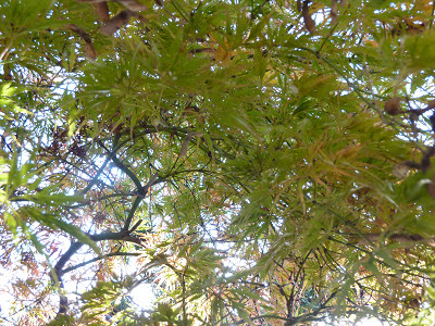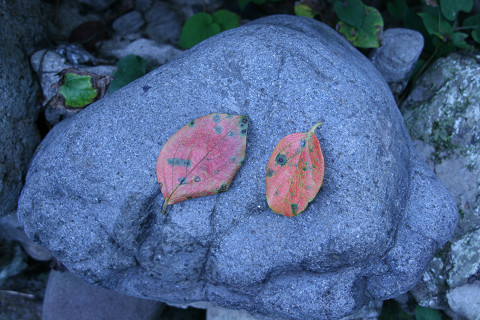 葉の影を落とす。