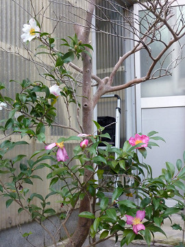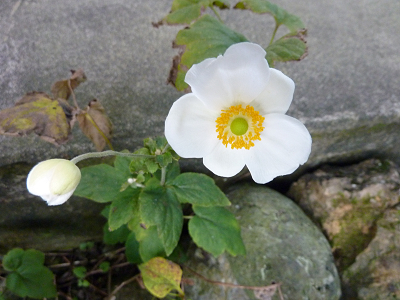 秋海棠の鮮やかなピンク色が散ってしまうと、秋明菊が清楚な白い花を開かせ始めた。