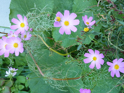 前庭の植え込みでは、コスモスが風に優しく揺れている。