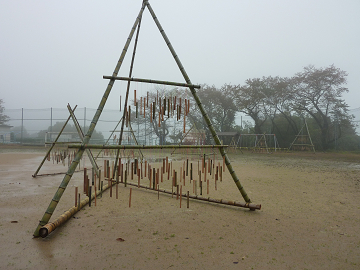 今回は空を指した三角形を、なだらかに上っていく竹林の斜面に交互に並べ、