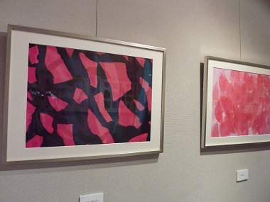 その両脇に、赤、紅、紫の帯が流れるように空間を形作った。