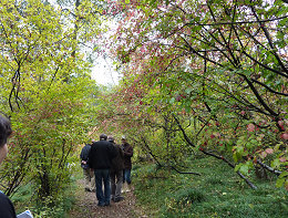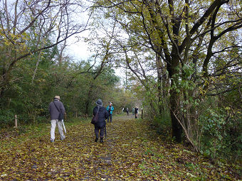 丘の中ほどで、人の話し声が。探鳥会の一団のよう。