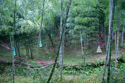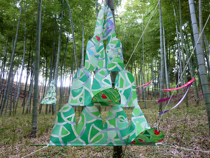 昨日と今日の2日間、竹林での作品を設置を行なった。