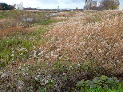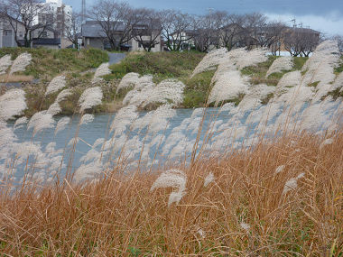 冬枯れのすすきの白い穂が