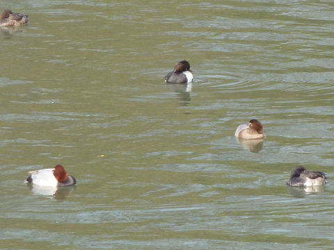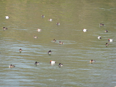キンクロハジロとホシハジロが沢山かたまって水面に浮かんでいた。