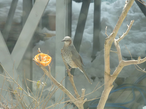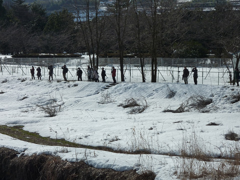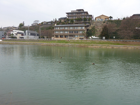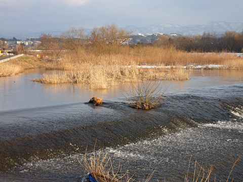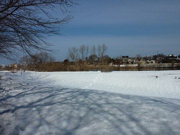 川原の雪はかなり少なくなって、遊歩道の一部は自転車でも走れそう。