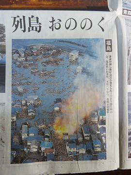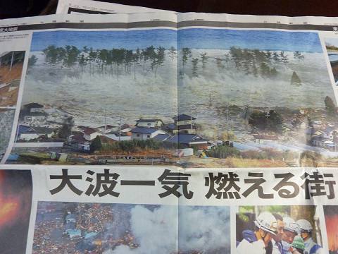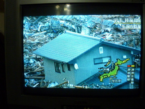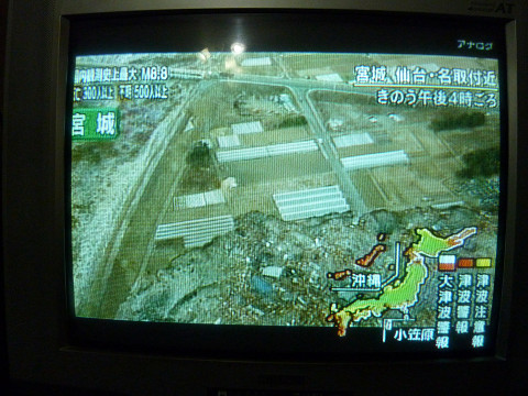 今日の午後、東北地方で起きた大地震の後の津波の映像だった。