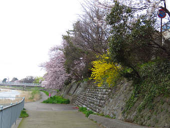 近年川原に増えてきた外来の黄色い花が、いち早く咲いている。